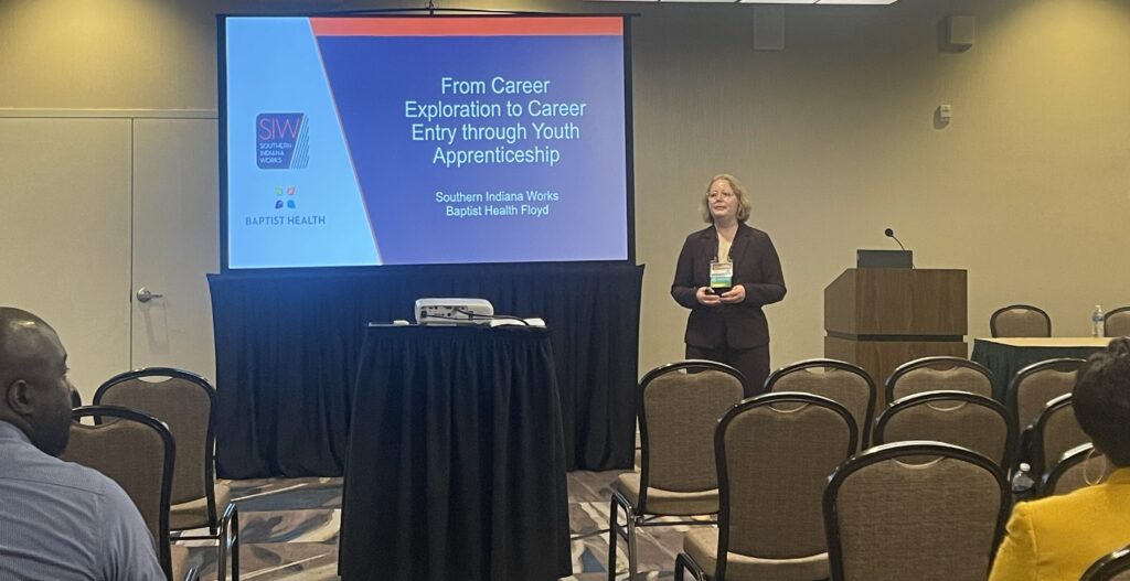 Their presentation, “From Career Exploration to Career Entry Through Youth Apprenticeship,” highlighted SIW’s Next Generation Talent initiatives, with a special focus on the successful Youth Apprenticeship program in partnership with Baptist Health Floyd. The session shared insights on how structured youth apprenticeship programs can effectively guide students from career exploration to real-world career entry.
